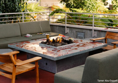 Une des caractéristiques les plus impressionnantes du siège social de Facebook est son toit vert de 3,6 hectares. Ce véritable parc, situé sur le toit du bâtiment, est composé de sentiers de promenade, d’espaces verts et de plus de 400 arbres. Ce toit écologique crée une atmosphère sereine pour les employés, favorise la détente et contribue à la durabilité du bâtiment en optimisant l’isolation thermique.