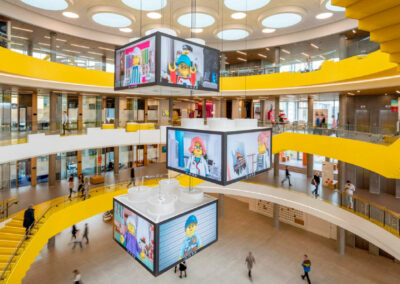 Le siège social de LEGO reflète la philosophie de la marque : donner libre cours à l’imagination. Chaque détail est pensé pour inspirer l’innovation. Les salles de réunion ont des noms et des designs thématiques, et les espaces de travail sont modulaires et adaptables, permettant aux employés de personnaliser leur environnement en fonction de leurs besoins.