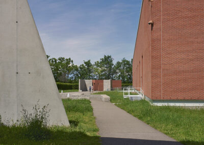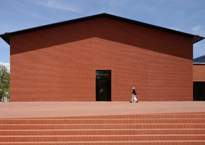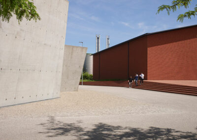 Le Vitra Campus Logistics Center a été conçu avec une approche minimaliste et moderne, typique du travail de SANAA. Le bâtiment se distingue par sa forme simple, ses lignes épurées, et ses murs transparents. Cette transparence crée un lien visuel direct entre l’intérieur et l’extérieur, offrant aux employés un cadre de travail lumineux et ouvert. Cette combinaison d’art et de fonction montre que même les bâtiments logistiques peuvent être esthétiques et inspirants, tout en restant pratiques.